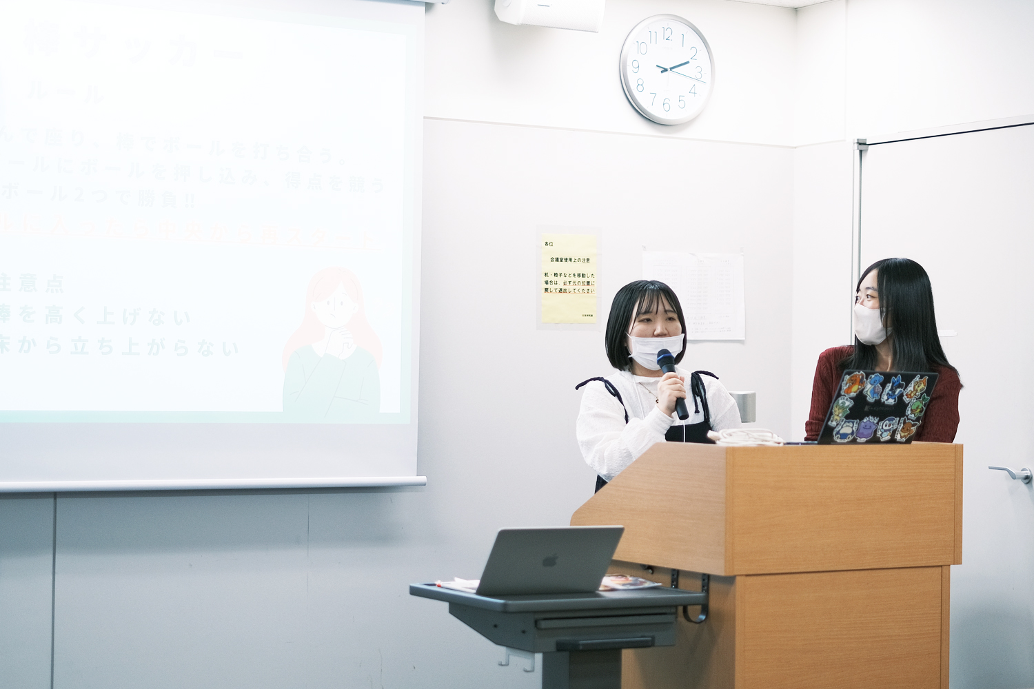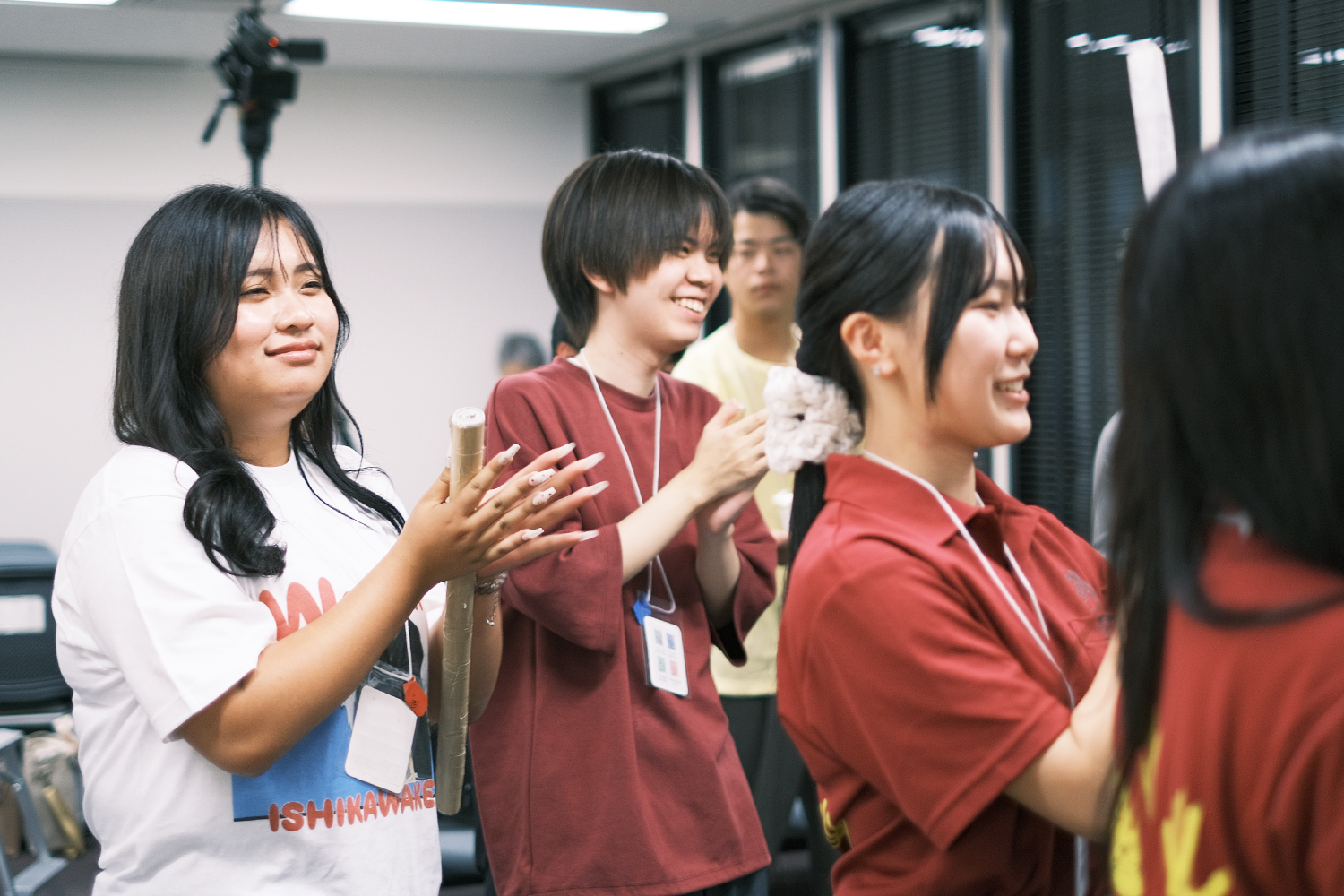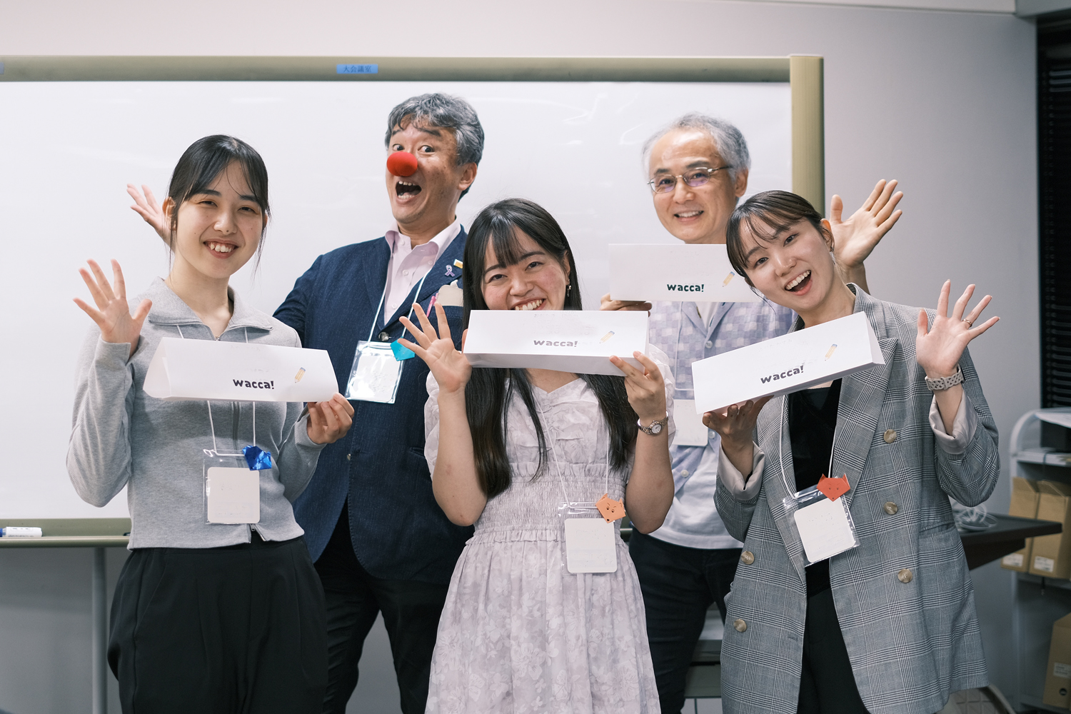 旭川市立大学 短期大学部 佐藤貴⻁ゼミナールのみなさんがつくってくれたチーム名と名札を目印に、それぞれのチームに分かれて作戦会議も挟んで試合開始。wacca!を支える大人メンバーの「キタキツネ」メンバーも、レフェリーや撮影係、助っ人などに任命され、学生メンバーに混ざって大奮闘でした。